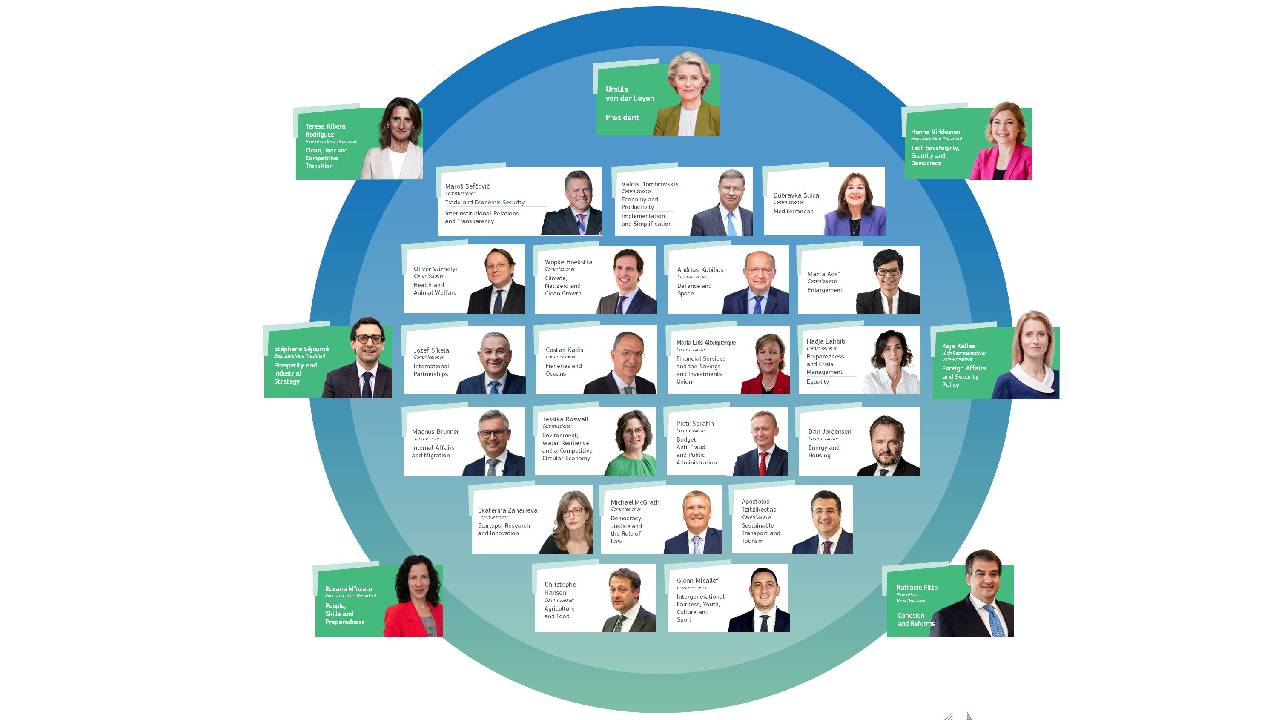 En el reparto de carteras que Ursula von der Leyen anuncio el 17 de septiembre destacan también las de Comercio (para la que se ha designado al eslovaco Maros Sefcovic); Sanidad y Bienestar Animal (Oliver Várhely, Hungría); Clima, Neutralidad Carbono y Crecimiento Limpio (Wopke Hoekstra, Países Bajos; Medio Ambiente, Resiliencia en Materia de Agua y Economía Circular (Jessika Roswall, Suecia); Presupuestos (Piotr Serafin, Polonia) y Pesca y Océanos (Costas Kadis, Chipre).
